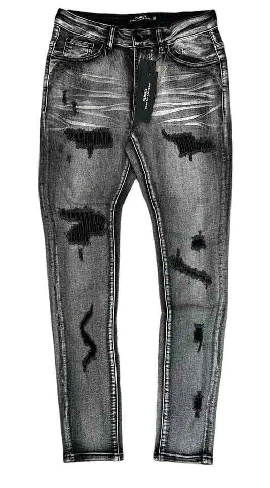 Fameux Ripped & Repaired Jeans (Smoke Grey)