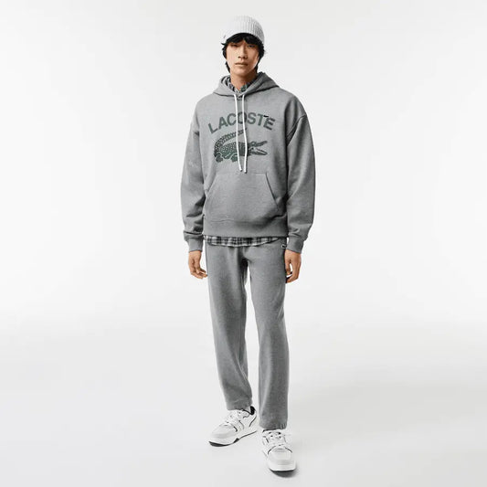 Lacoste Men's Loose Fit Crocodile Hooded Sweatshirt & Print Trackpants Set Grey YRD