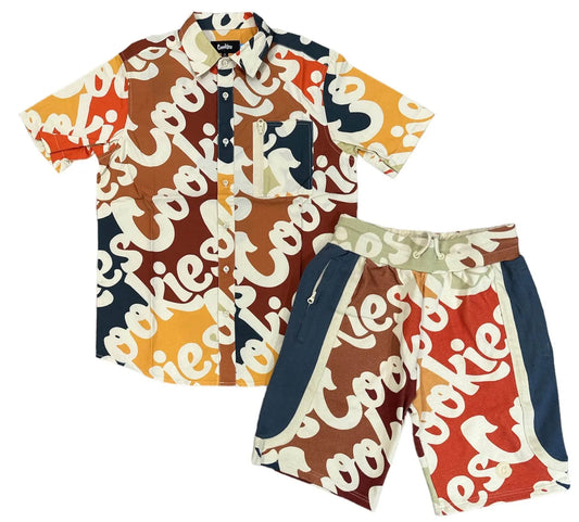 Cookies Continental All Over Print S/S Woven Shirt & Short Set - Cream