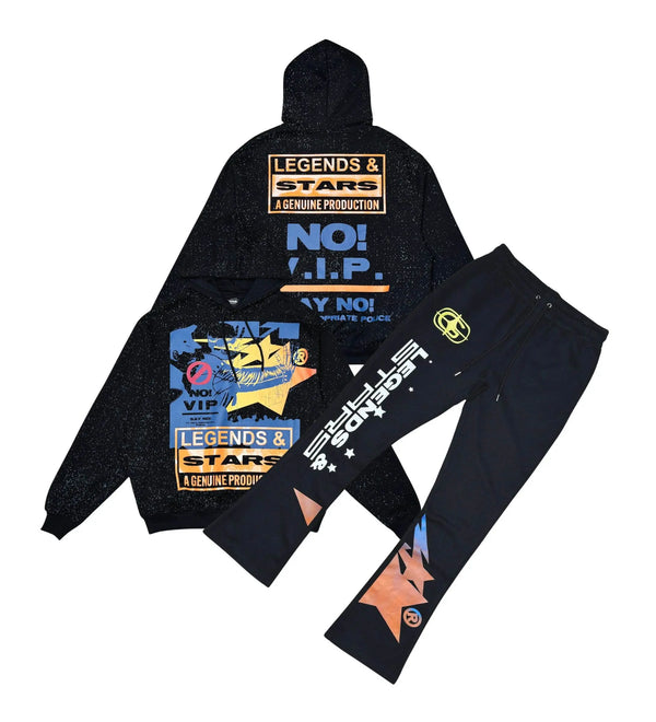 Genuine - Legends & Stars Hoodie & Flare Pants Set - Black
