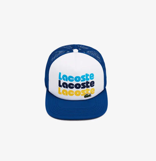 Lacoste Unisex Print Trucker Cap - White Blue F2F