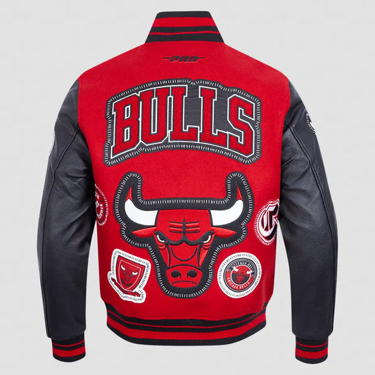 Pro Standard - NBA Chicago Bulls Team Badge Men's Rib Wool Varsity Jacket - Black / Red