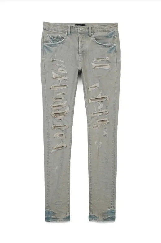 Purple Brand Jeans P001 Low Rise Skinny Jean - Peyote Destroy Repair P001-Pedr123