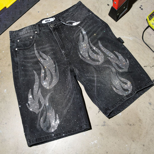 Liquid Crystal - Men Crystal Stacked Jeans - Black Ice JTF2333
