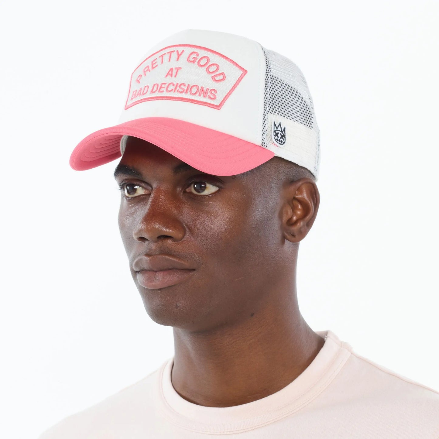 Cult Of Individuality - "Good At Bad Decisions" Mesh Back Trucker Hat in Winter White