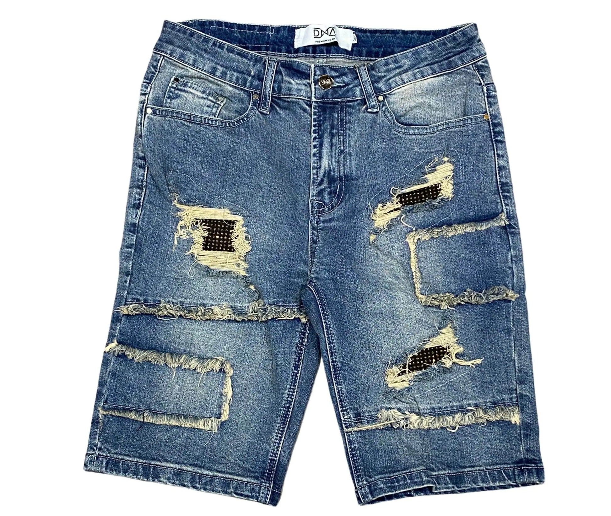 DNA Men Stones Distressed Jeans Shorts Blue Gold