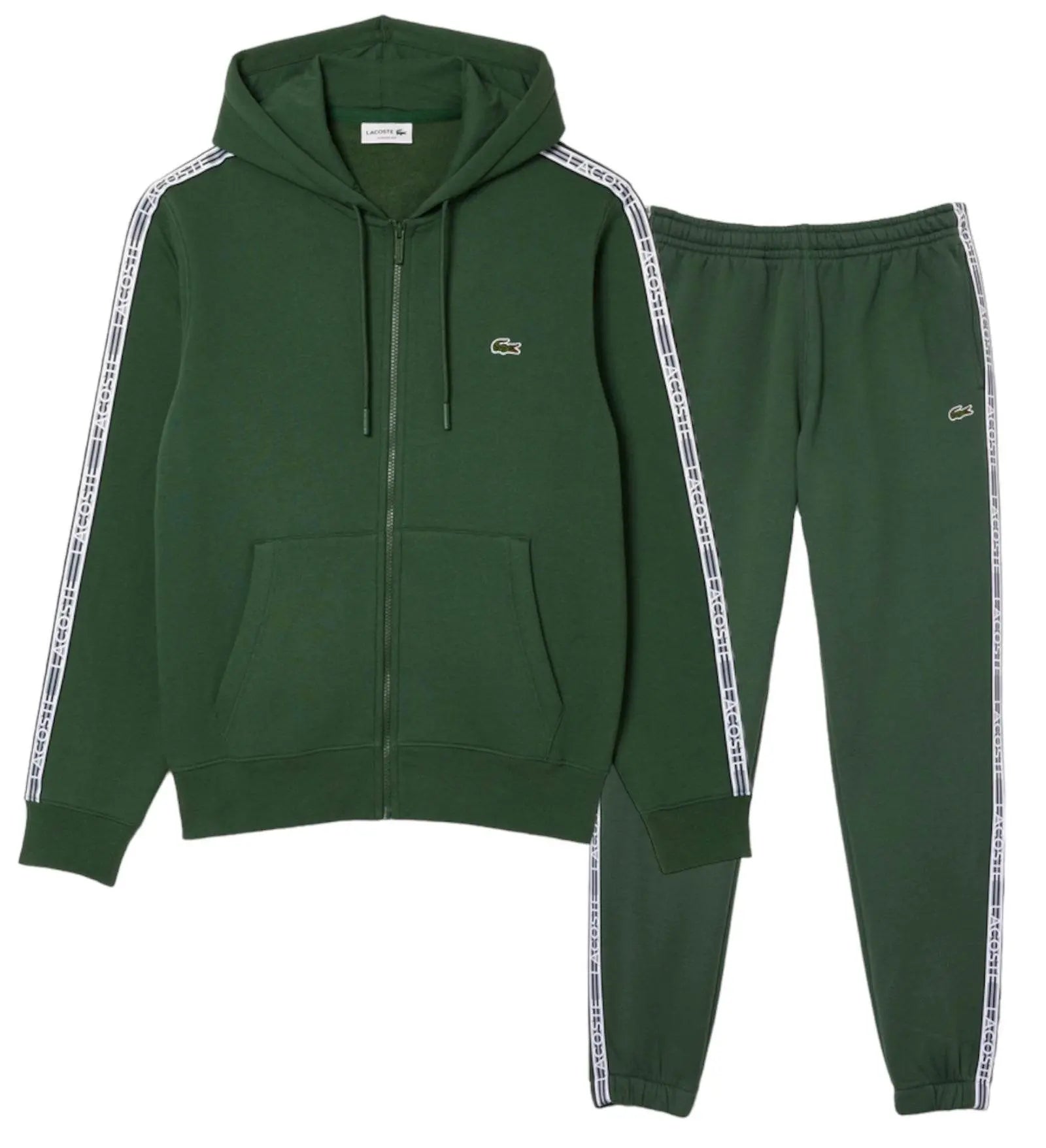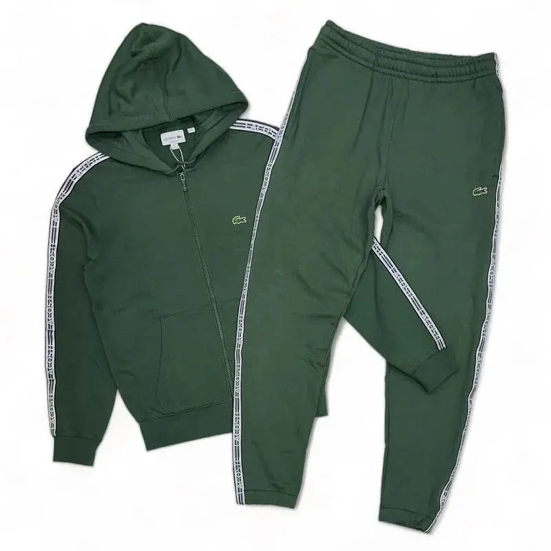 Lacoste Men’s Classic Fit Branded Stripes Zip-Up Hoodie & Logo Stripe Joggers Set - Dark Green SMI