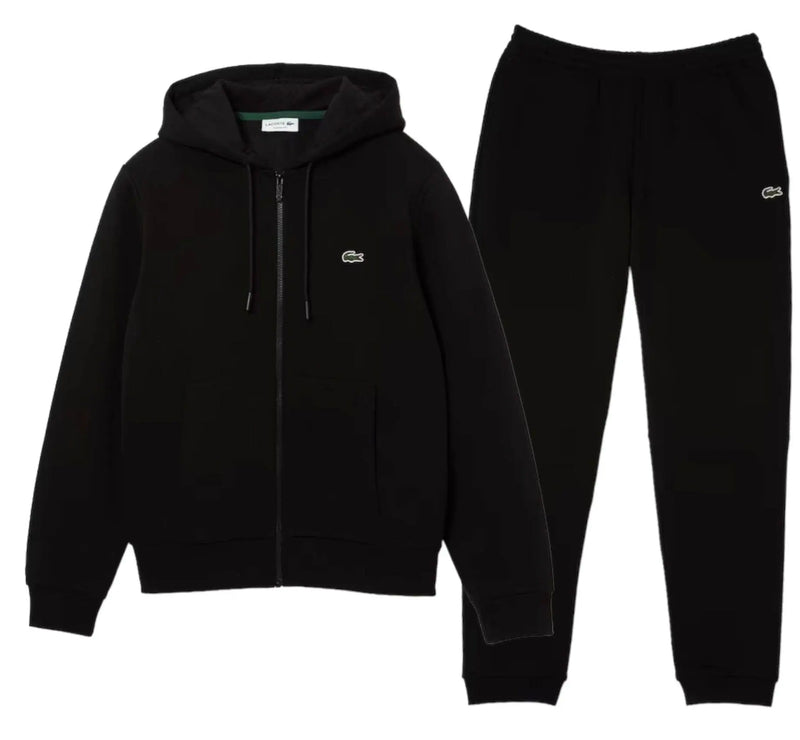 Lacoste Men’s Kangaroo Pocket Color-Block Sweatshirt Hoodie & Tapered Fit Fleece Trackpants Set Black 031