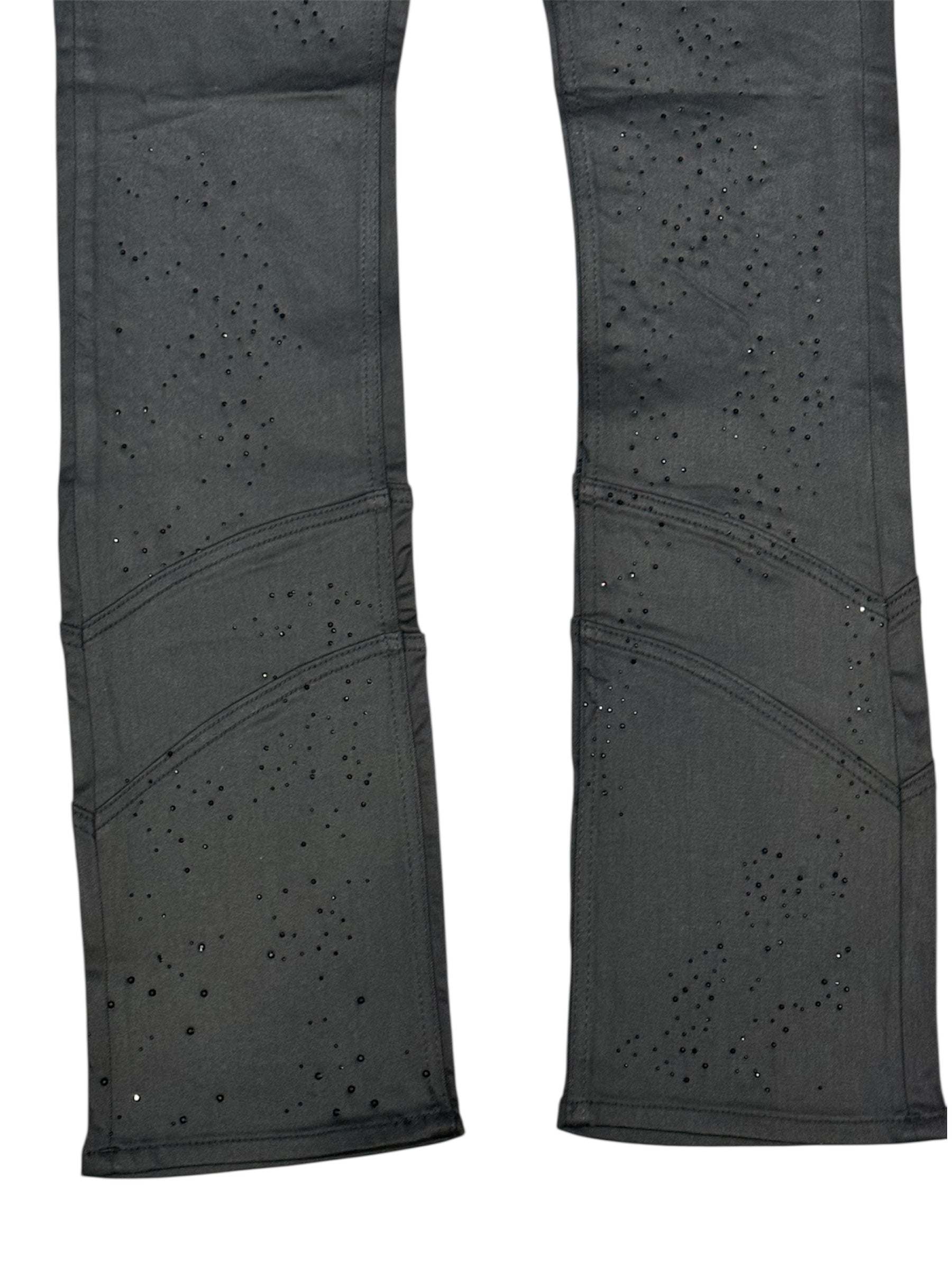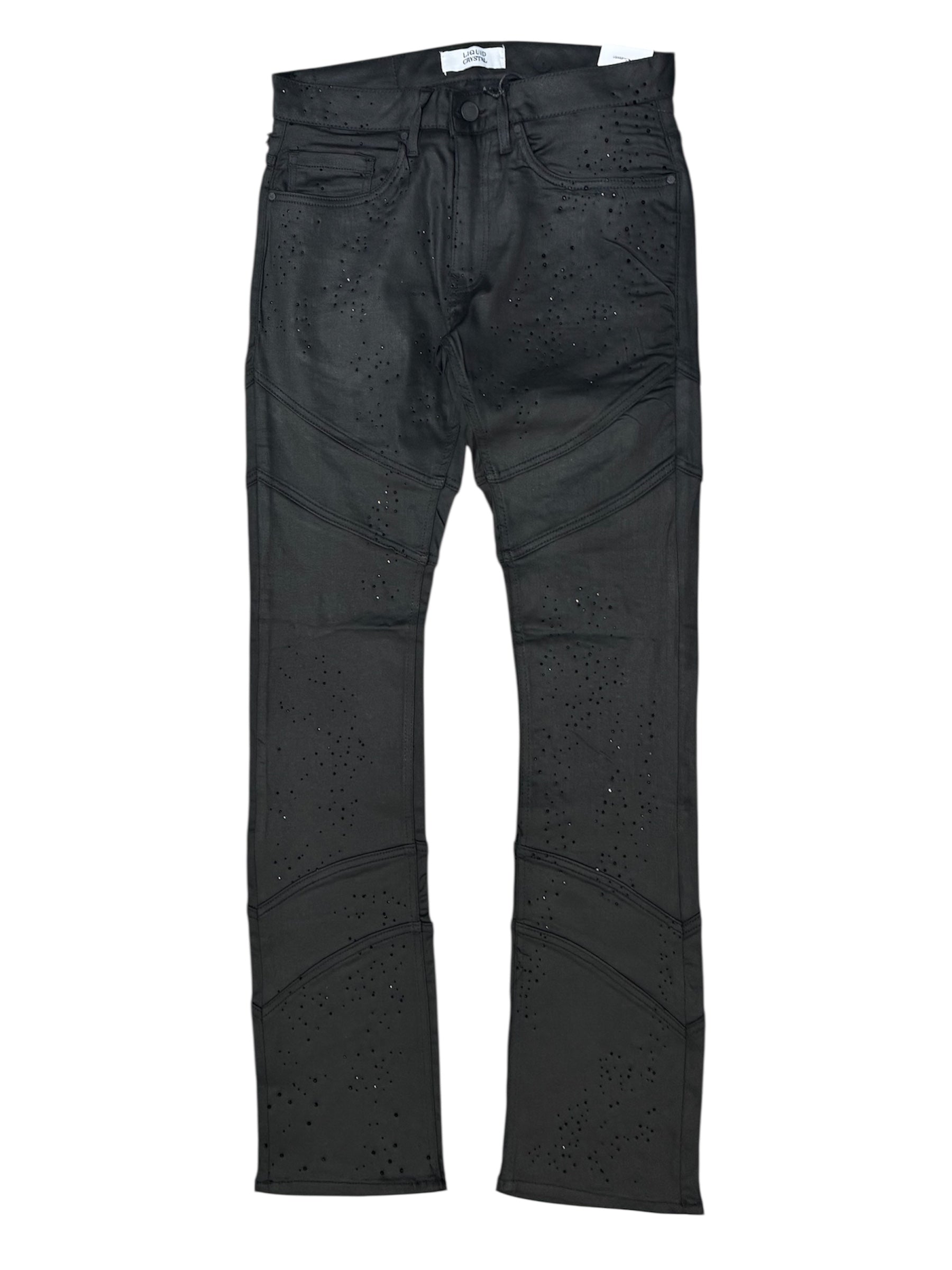 Liquid Crystal - Men Crystal Stacked Jeans - Jet Black Wax JTF2333