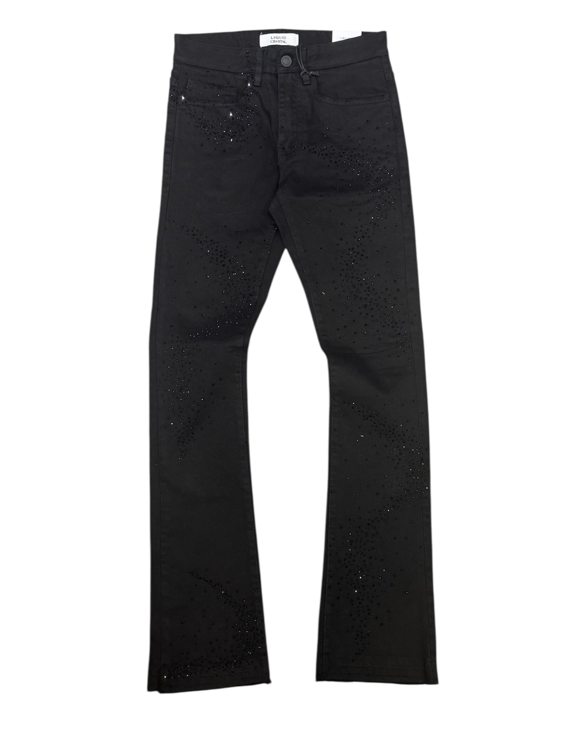 Liquid Crystal - Men Small & Big Crystal Stacked Jeans - Jet Black JTF2316
